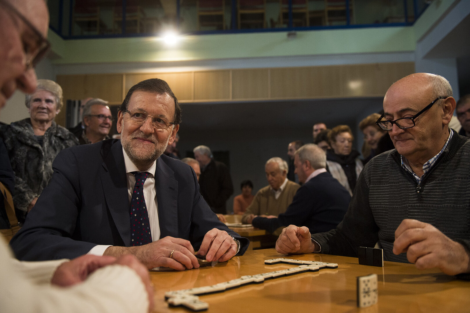 Vuelta a los pueblos. A los paseos, por la mañana en Olmedo (Valladolid) y por la tarde en Benavente (Zamora). En los dos municipios, en los que ganó el PP, Mariano Rajoy recibió una cálida acogida pese a la gélida temperatura, siempre bajo cero. "A pesar del frío, yo tengo calor", dijo. Jugó -y perdió- al dominó, saludó a cuantas personas pudo y en la segunda de sus visitas se llegó a subir a un banco del paseo de la Mota, como hizo en ese mismo parque hace nueve años.