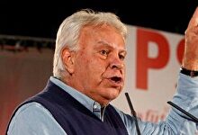 Felipe González, durante el mitin del PSOE en Badajoz este martes | EFE