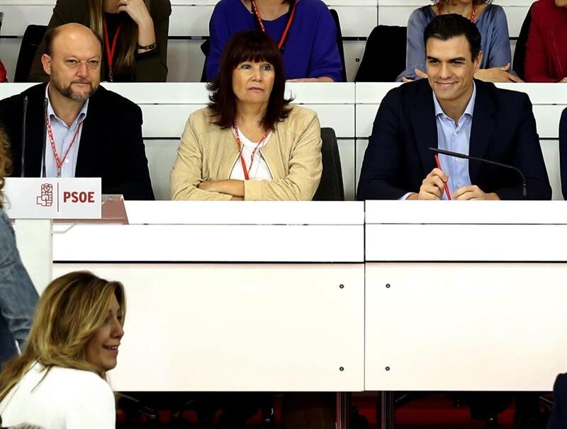 Su apoyo tanto a Fernández como a Díaz daba cuenta del enfado de los barones acusados de "anteponer las cuestiones personales a la gobernabilidad de España". Una crítica no menor para una Susana Díaz que suele tener a tiro la palabra España cada vez que se le pregunta por cuestiones internas y que ayer volvió a recular en una sede en la que consiguió una victoria en lo relativo a los pactos, pero también una derrota.