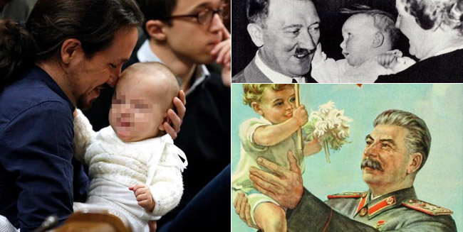 Las fotos con niños, con bebés incluso, son un recurso propagandístico utilizado por políticos de todo pelo, especialmente los muy populistas. Históricamente han utilizado a niños políticos totalitarios y sanguinarios, como Stalin y Hitler. Más recientemente, el dictador norcoreano y el bolivariano Hugo Chávez se dejaron fotografiar con niños en brazos. En España han sido los líderes de Podemos los que han vuelto a utilizar a un niño, en este caso el hijo de Carolina Bescansa, para conseguir réditos propagandísticos electorales.