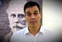 Ante un retrato del fundador del PSOE, Pablo Iglesias, llama a la participación en la consulta: "Cuento contigo, cuento con tu voto".