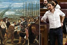 El líder morado comparó el pacto PSOE-C's con Las lanzas de Velázquez pese a que en la pintura España no es la que se rinde.