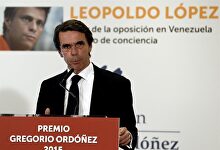 El expresidente acude a San Sebastián arropado por Mayor Oreja, Iturgáiz y Sémper. Entrega el premio Gregorio Ordóñez a Leopoldo López.