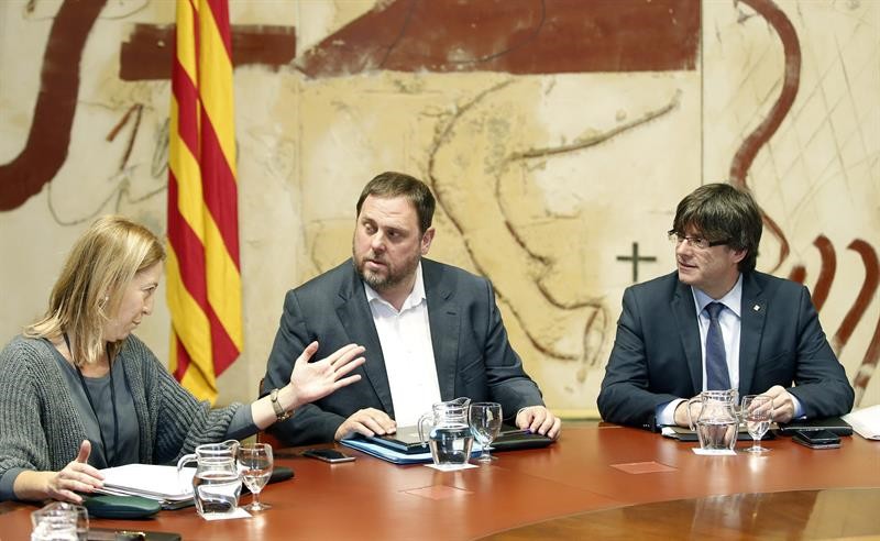 El líder de ERC, Junqueras, ejerce de presidente de facto, se reúne con el ministro de Economía, Luis de Guindos, y está en contacto casi permanente con el de Hacienda, Cristóbal Montoro, para sostener el día a día financiero de la Generalidad de la desconexión y el Parlament constituyente. Raül Romeva, el "ministro" de Exteriores, también va a su aire, a pesar de que sus competencias están en el limbo, y Munté (procedente de la UGT y avalada por Artur Mas) se mantiene fiel a Puigdemont y ejerce las funciones de portavoz gubernamental de CDC.