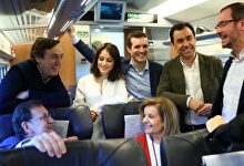 Mariano Rajoy, rodeado de su cúpula, en el AVE este sábado | Twitter @marianorajoy