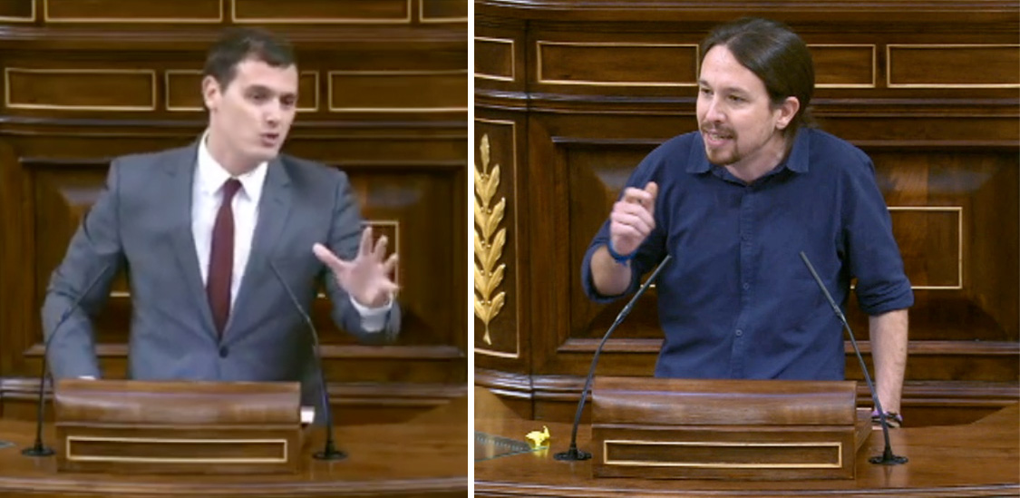 Albert Rivera y Pablo Iglesias han dado muestras una vez más de su distancia ideológica, esta vez en el debate sobre los refugiados, y dejando ver que el pacto de ambos con el PSOE está muy lejos.