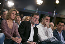 Rajoy, junto a Cospedal, Albiol y Maíllo, este sábado en Barcelona. | Tarek.
