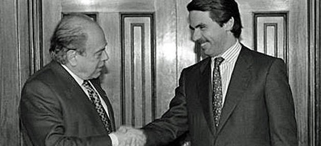 Para la foto posaban el propio Aznar, el mismísimo Pujol, así como Rodrigo Rato, Duran Lleida, Macià Alavedra, Joaquim Molins, Sánchez Llibre y Mariano Rajoy, el único superviviente político de esa instantánea. Todos los demás, o están imputados, desaparecidos o cuestionados. El pacto que parecía imposible se consumó. Eran otro PP y, sobre todo, otra CiU, la que discutía y arañaba fondos y competencias del Estado, ya fuera con el PSOE o con los conservadores, mientras que en Cataluña mantenía sus férreos postulados lingüísticos y culturales y preparaba el camino para el fin de la fase autonómica y el comienzo del proceso separatista. Era la política del "doble lenguaje" de Pujol, la mano de seda en Madrid y el guante de hierro en la Barcelona de la inmersión lingüística y el relato del odio a España.