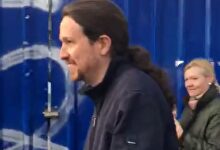 La única persona que aparece en el vídeo de Iglesias y que no forma parte de su séquito exclama "¡Será imbécil!" al pasar junto al líder morado.
