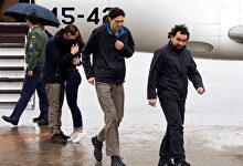 Los periodistas Antonio Pampliega, José Manuel López y Ángel Sastre, a su llegada a España tras su liberación | EFE