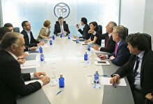 Rajoy, este martes, en la reunión con su cúpula en Génova13. | Tarek.
