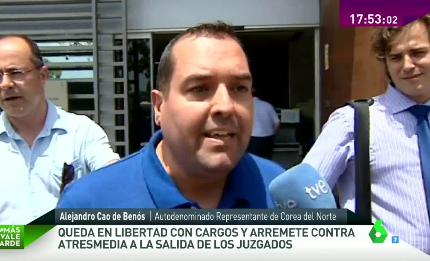 Tras quedar en libertad con cargos, el embajador 'oficioso' Cao de Benós arremetió contra una periodista a la salida del juzgado.
