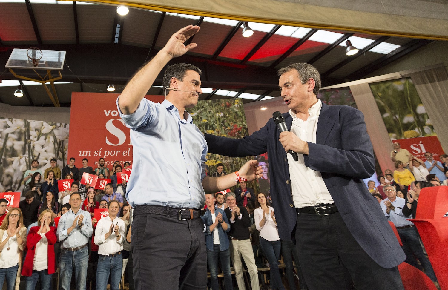 La habilidad mitinera del ex secretario general contagió al actual, a Pedro Sánchez, quien incluso comenzó su intervención por este asunto que ha esquivado en los últimos días. "Pablo Iglesias tiene razón. Porque el descontento entre los votantes de Podemos llega hasta Pablo Iglesias porque incluso él ya reconoce que los mejores presidentes del Gobierno son socialistas. Y tiene razón. Tiene razón". Y viniéndose arriba, se preguntó: "¿Quién si no el PSOE puso en pie la dependencia, la igualdad, las pensiones, la educación, la sanidad, la ley de lucha contra la violencia de género... ¡Pero si hasta el final del terrorismo etarra tiene las siglas del PSOE!". Y recogiendo las palabras de Iglesias, añadió: "¡Dos grandes presidentes, los dos mejores presidentes de la democracia: José Luis Rodríguez Zapatero y Felipe González!".