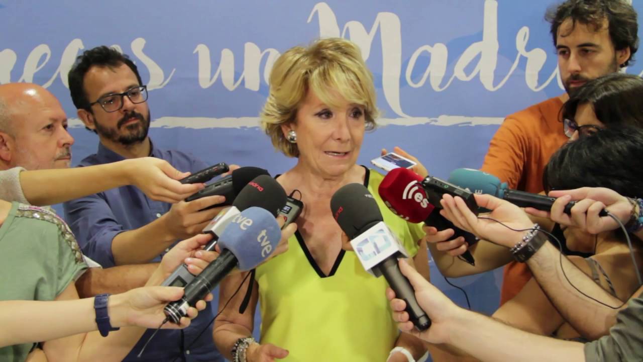 La portavoz del PP en el Ayuntamiento de Madrid, Esperanza Aguirre, ha tildado este lunes de "estrepitoso batacazo" los resultados electorales de Unidos Podemos en la ciudad de Madrid