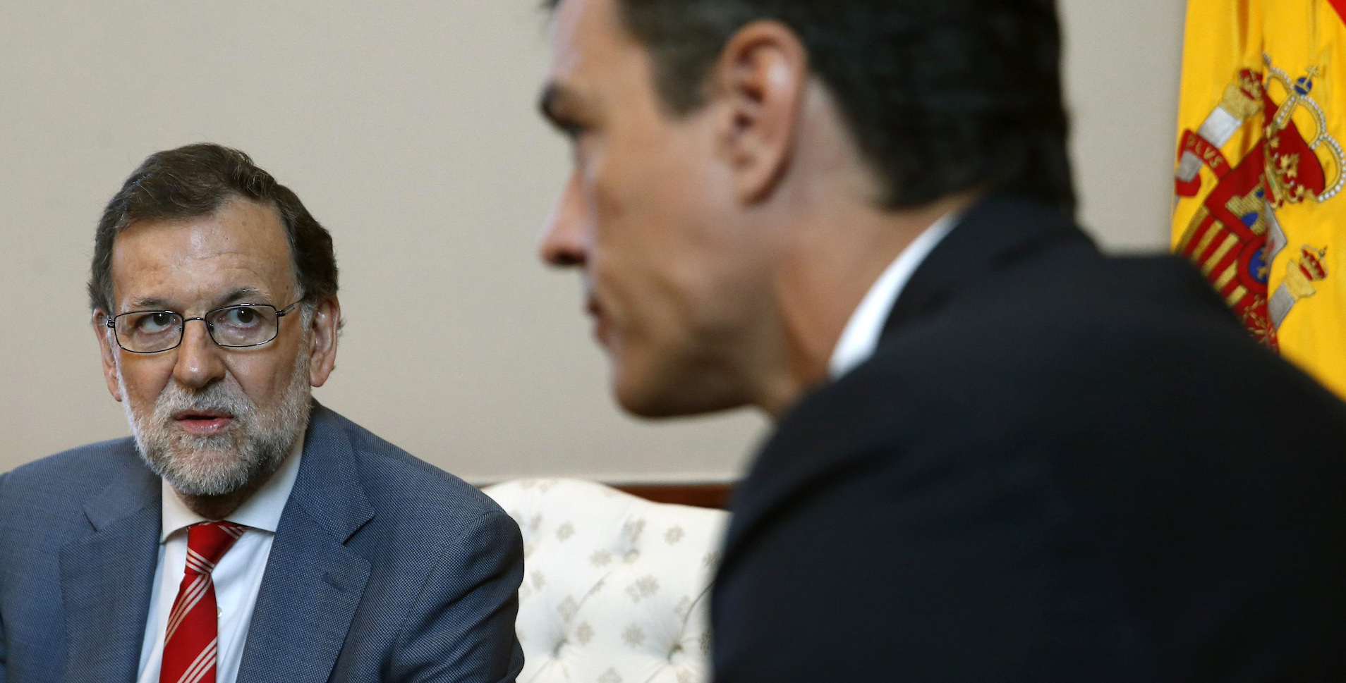 Cordial saludo entre Mariano Rajoy y Pedro Sánchez antes de su reunión