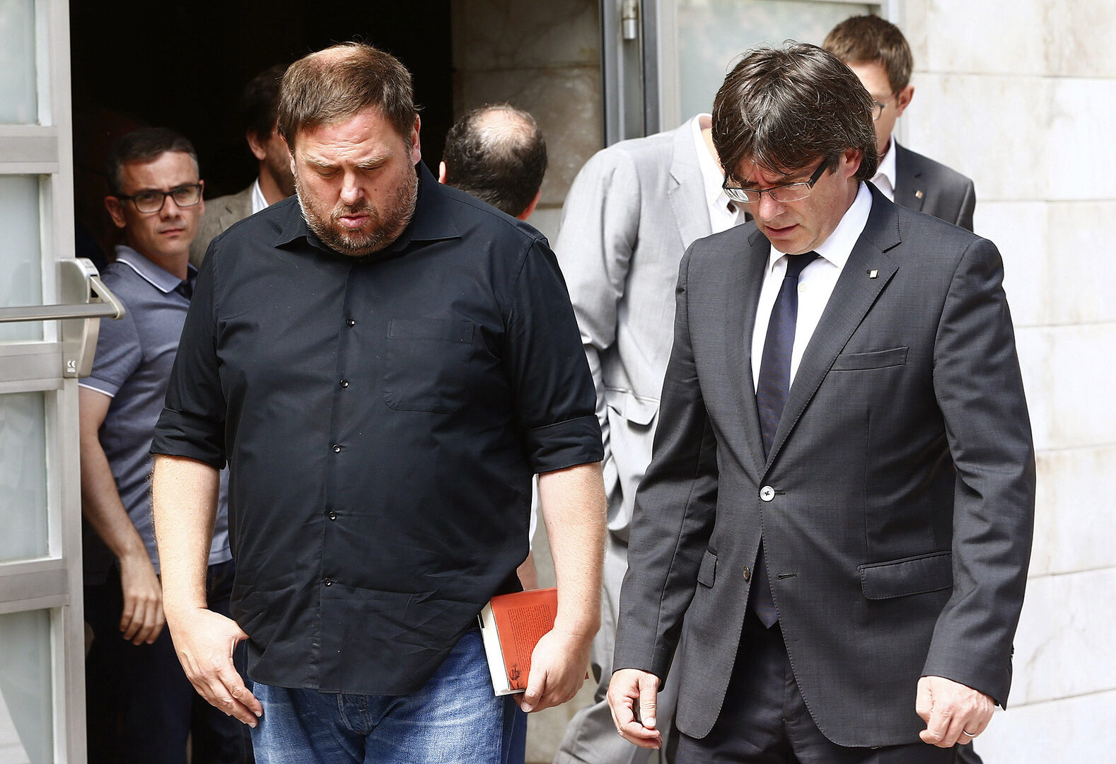 Puigdemont calla y Junqueras, en calidad de vicepresidente y responsable de Economía, promete a la CUP que habrá una partida para el referéndum, un apoyo explícito a la presión cupera sobre Puigdemont con un calendario que en el PDC consideran imposible de cumplir y que puede provocar una grieta entre convergentes y republicanos del grupo parlamentario Junts pel Sí.