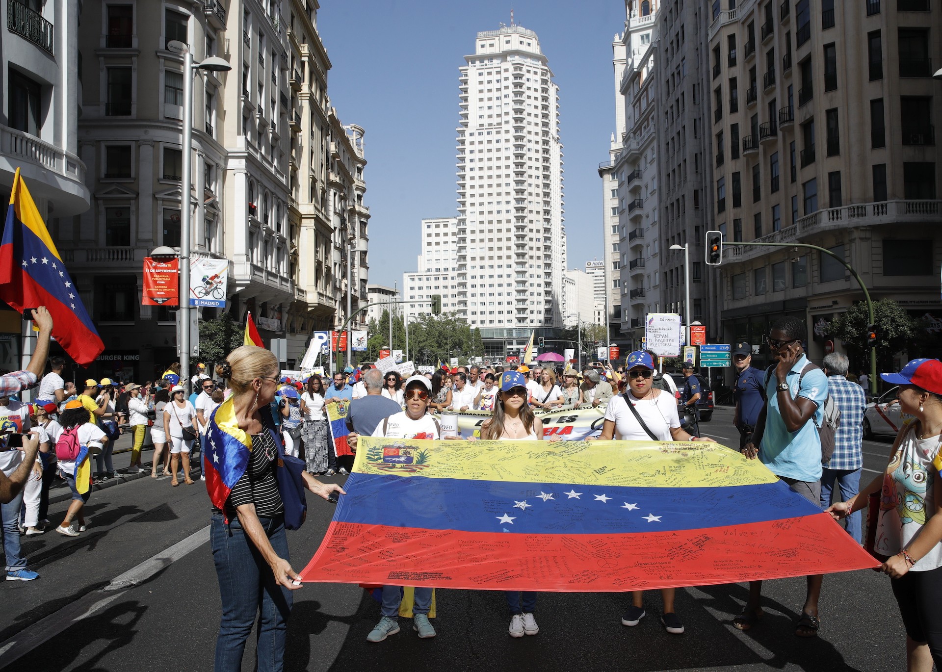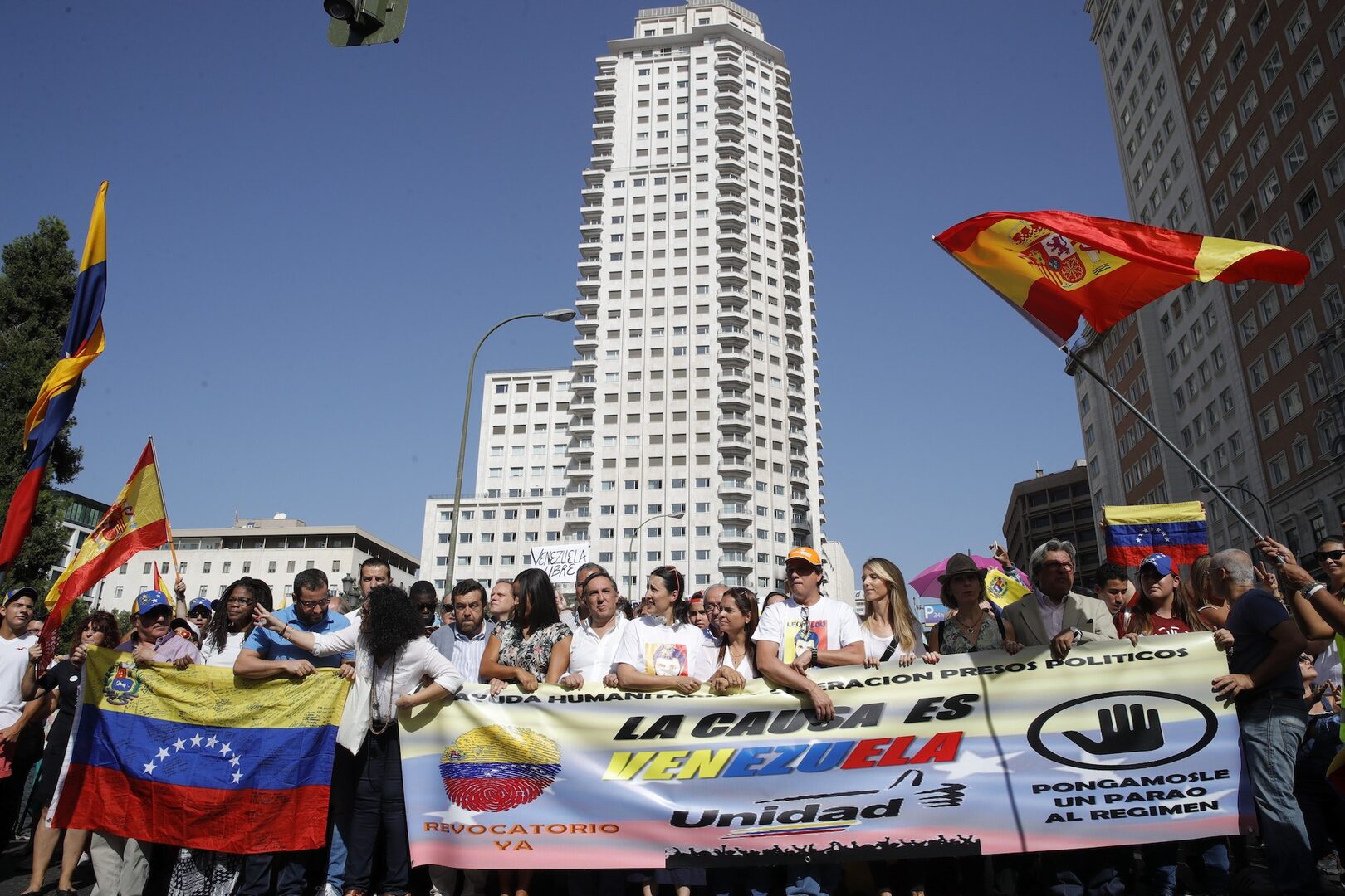 La marcha, encabezada por representantes de asociaciones venezolanas y responsables del PP, Ciudadanos y PSOE, quiere ser una réplica de la manifestación del día 1 en Caracas para pedir que este año se celebre un referéndum revocatorio del mandato de Maduro, pero también para que se abra un canal de ayuda humanitaria a Venezuela.