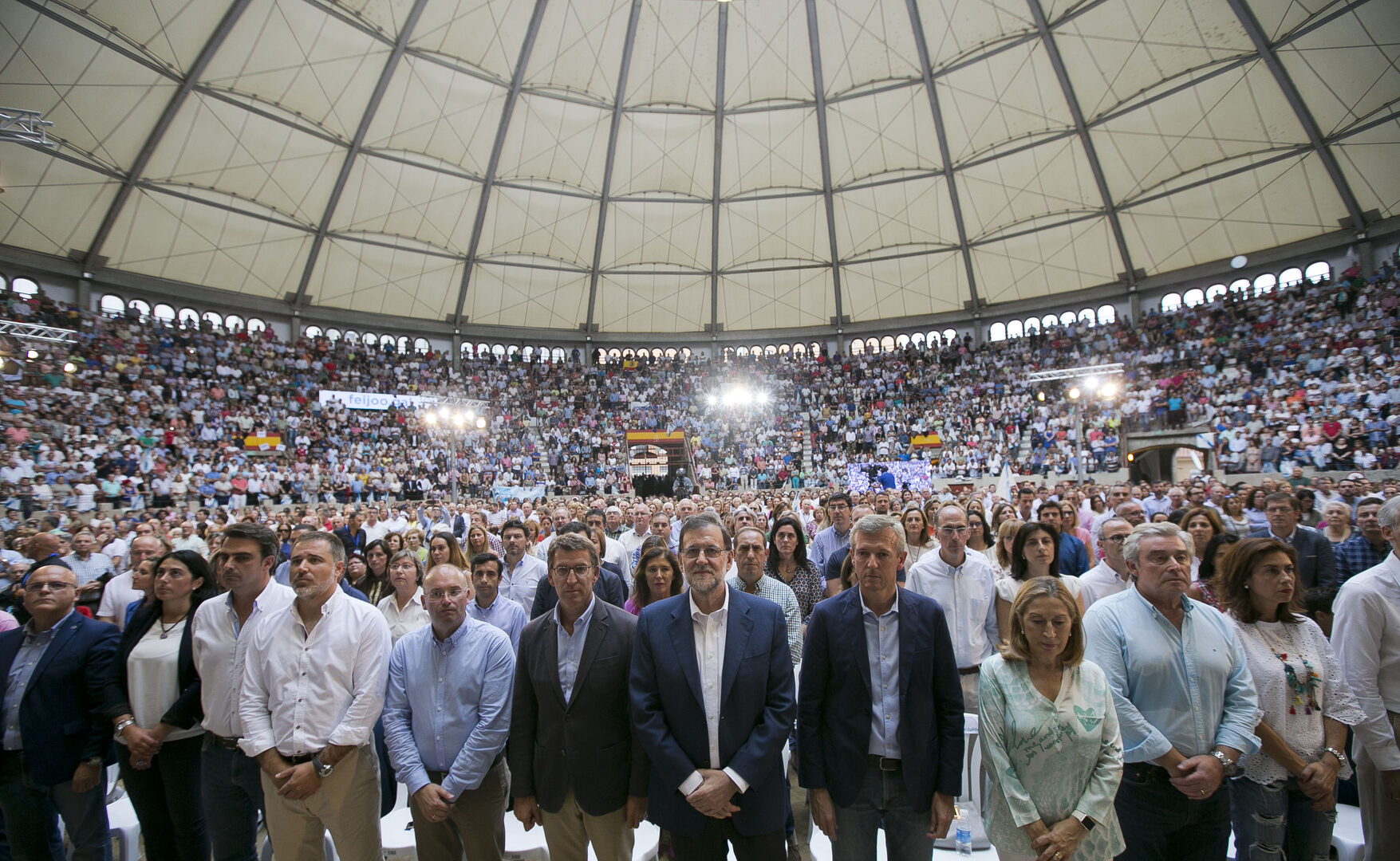 Para Mariano Rajoy, el de Pontevedra fue un mitin cualquiera. El candidato a las elecciones gallegas es Alberto Núñez Feijóo, pero el presidente en funciones es consciente de que él también se la juega una vez más en su tierra. Y, en un momento especialmente complicado -con el caso Soria en todas las portadas-, recibió un importante espaldarazo de los suyos. Como en los mejores tiempos, el PP de Galicia logró abarrotar la plaza de toros de la ciudad: 12.000 simpatizantes dentro y cerca de 2.000 en los aledaños.