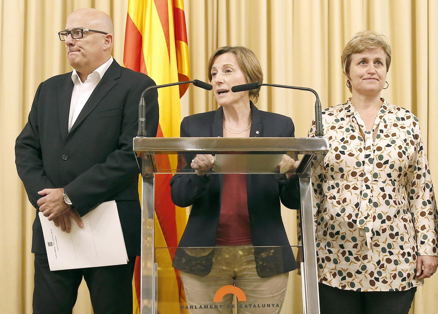 En este punto, Forcadell ha advertido de que en la cámara de todos los catalanes se podrán seguir presentando todas las iniciativas que se considere que son favorables a la ruptura con España.Tanto es así que la Mesa del Parlamento de mayoría independentista ha tumbado las alegaciones de Ciudadanos, PP y PSC para impedir que se vote el referéndum unilateral y el llamado Proceso Constituyente y lo llevarán al debate de Política General de este jueves. Tras el aviso del Constitucional, es ahora la Fiscalía la que debe decidir si procede impulsar un procedimiento penal contra Forcadell por un delito de desobediencia.