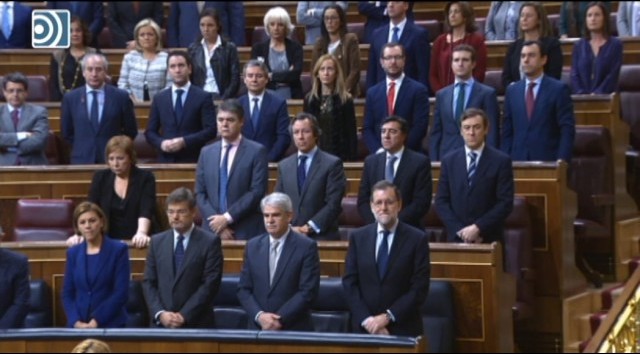 El Congreso de los Diputados ha guardado un minuto de silencio antes de la sesión de control al Gobierno por la muerte de Rita Barberá en el que ha estado ausente Podemos.