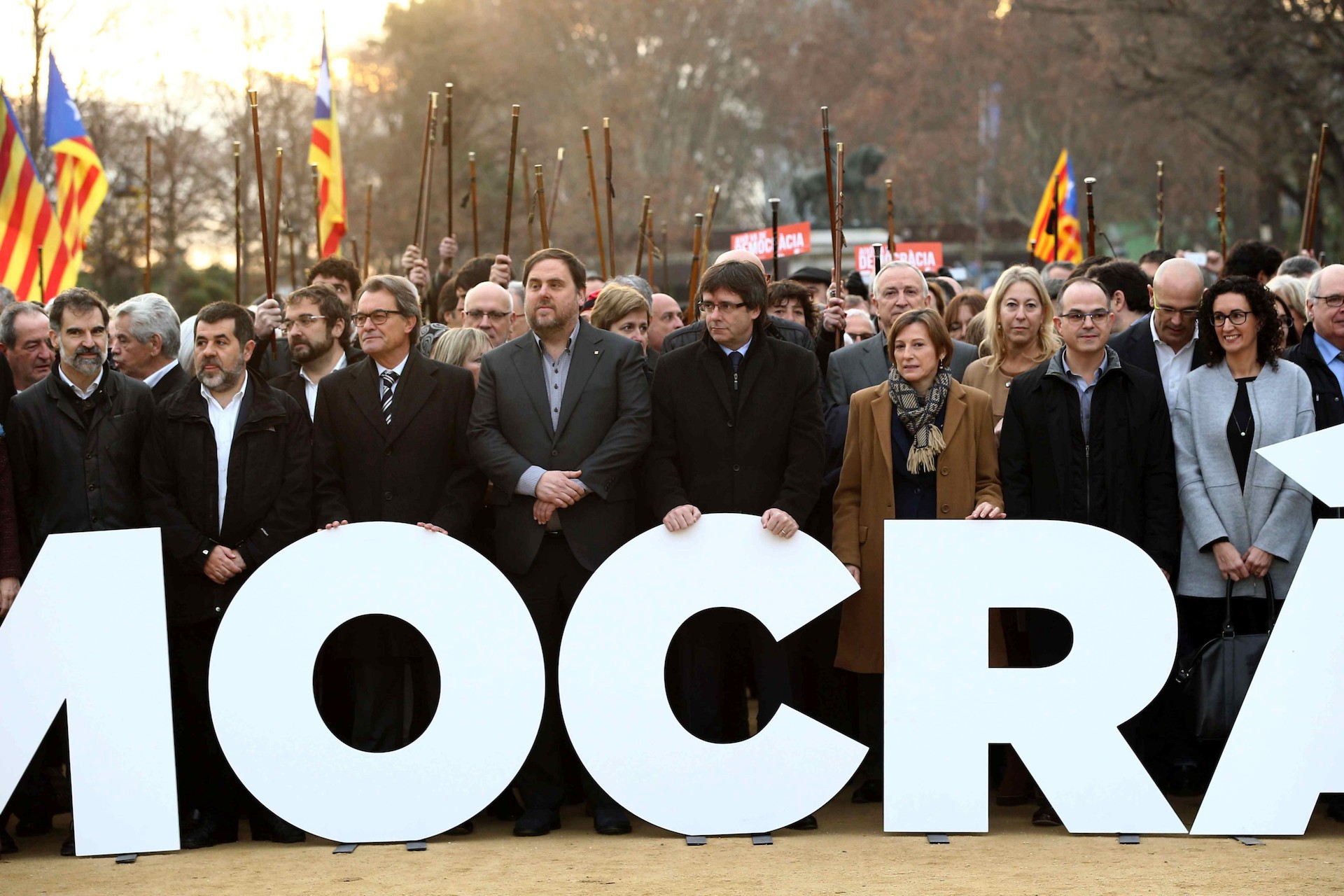 De ahí, el grupo ha marchado hasta el TSJC, en cuyas puertas se concentraban cargos menores de los partidos y las entidades del proceso.