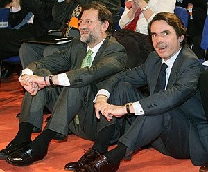 Mariano Rajoy y José María Aznar, durante el Congreso Nacional del PP de Valencia en 2008. Ambos, sentados en el suelo