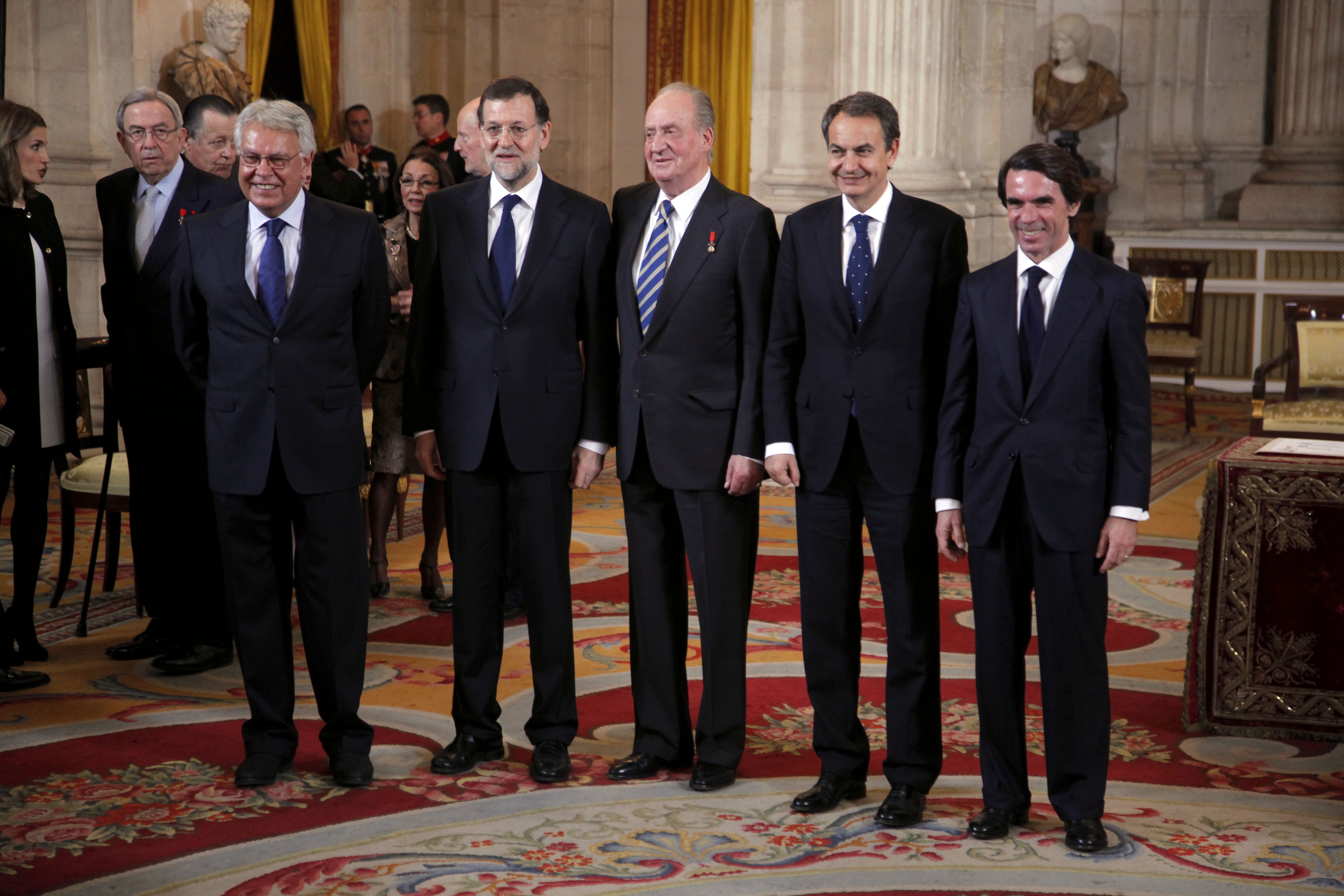 Imposición del collar de la insigne orden del Tosión de Oro al presidente de la Republica Frances Nicolas Sarkozy en presencia del Presidente del Gobierno Mariano Rajoy y de los ex presidentes del gobierno Jose Luis Rodriguez Zapatero, Jose Maria Aznar y Felipe Gonzalez en 2012