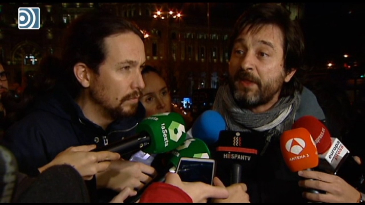 Rafael Mayoral calificó el acuerdo entre PP y PSOE de "chanchullo" y se mostró especialmente molesto con la presencia de Carmona en la protesta: "Venís a provocar".