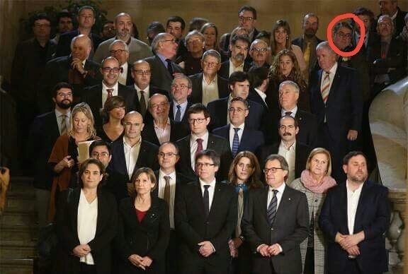 El exterrorista recuperado para la causa separatista aparece en la quinta línea de la foto de familia en las escaleras del parlamento regional tras la infructuosa reunión en la que Puigdemont y Junqueras vieron modificada su hoja de ruta (el referéndum o referéndum para la segunda quincena de septiembre) por la alcaldesa de Barcelona, Ada Colau, que impuso las tesis de que la consulta se debe pactar con el Estado y no se deben poner plazos para evitar más frustraciones entre los simpatizantes del proceso.