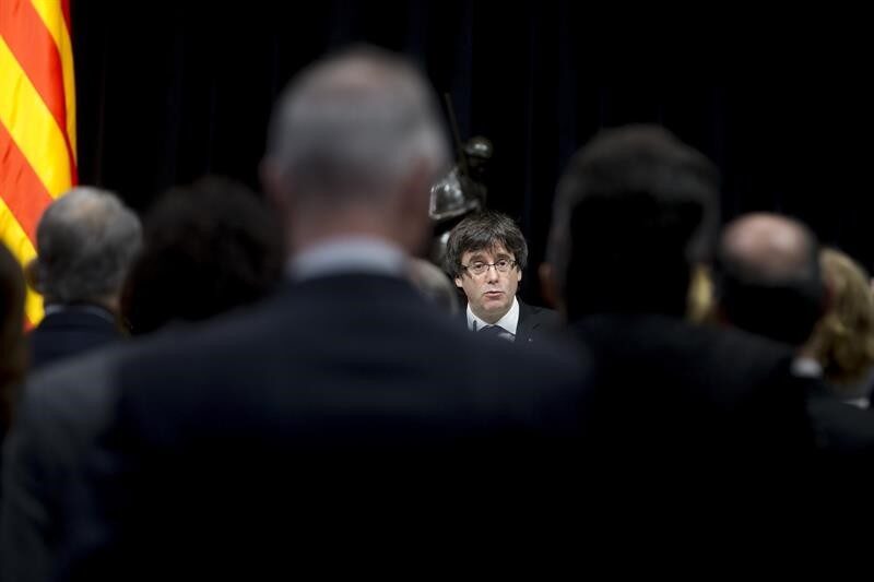 Tras el fiasco de su viaje a Bruselas en el que no consiguió ni un solo apoyo nuevo para la defensa del referéndum unilateral, el presidente de la Generalidad, Carles Puigdemont ha aprovechado este miércoles la tradicional recepción anual al cuerpo consular con representación en Cataluña para vender sus planes rupturistas y pedir apoyo internacional para poder consumarlos antes de que finalice 2017 y ante lo que Puigdemont ha calificado como "negativa unilateral" del Gobierno central.