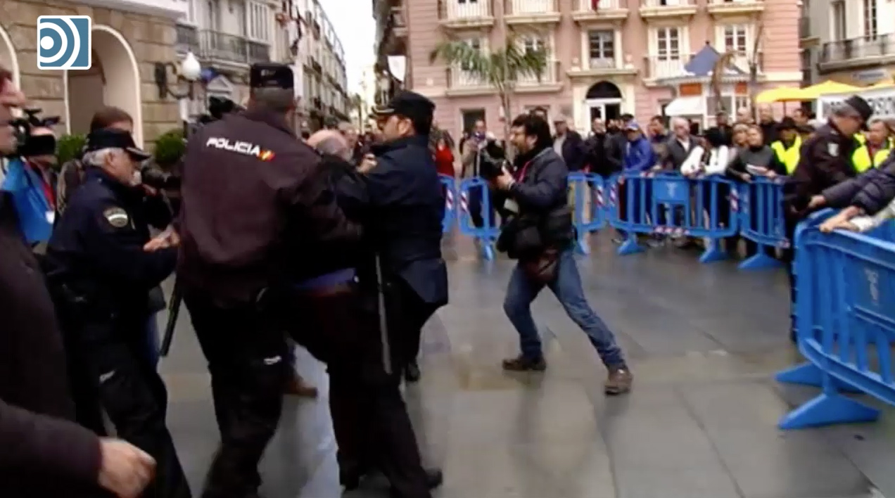 En ese momento, un grupo de manifestantes ha roto también el cordón de vallas y ha proferido gritos de "fuera de Cádiz" contra la comitiva de la presidenta.