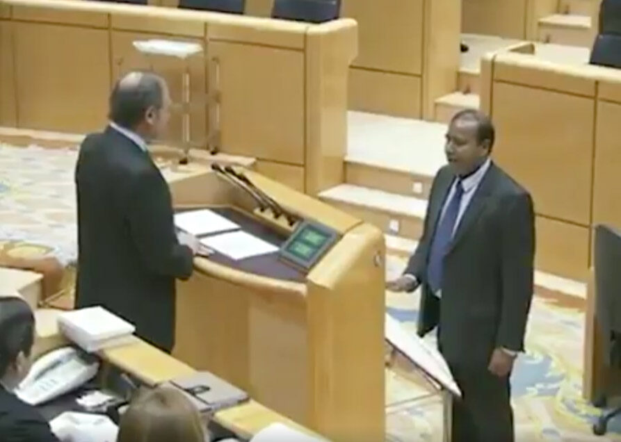El nuevo senador de Esquerra es originario de la India y lleva instalado en Cataluña desde 2005, pero sorprendentemente no parece haberse tomado la molestia de adquirir un nivel mínimo de español, sobre todo para ser senador.