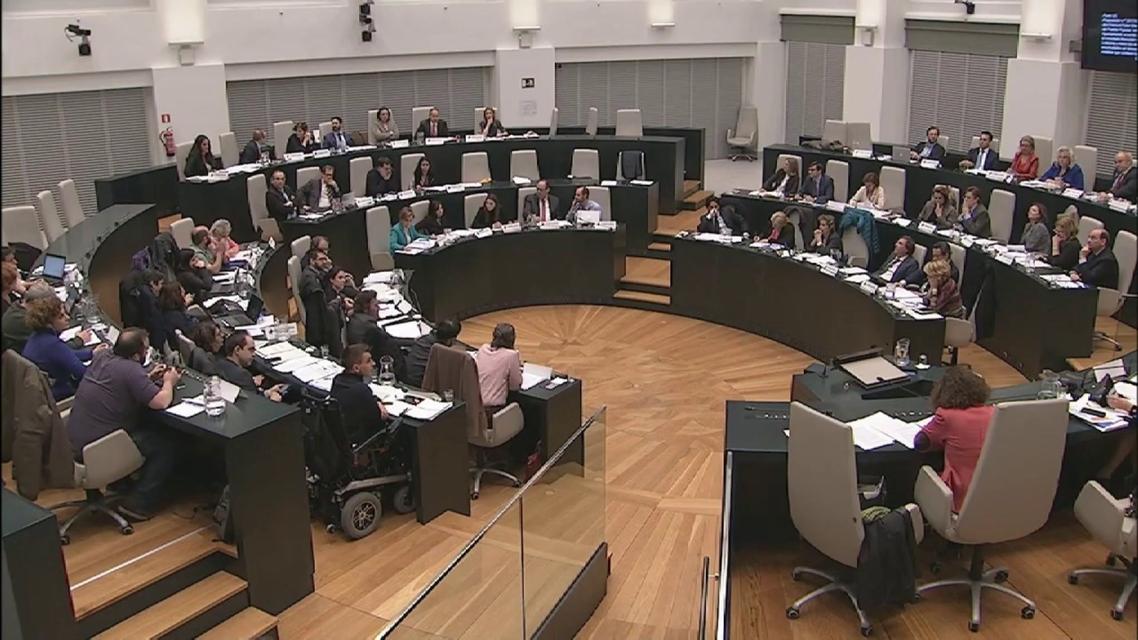 Imagen inédita la presenciada este martes en el Palacio de Cibeles a raíz de una proposición presentada por el PP sobre el régimen chavista.
