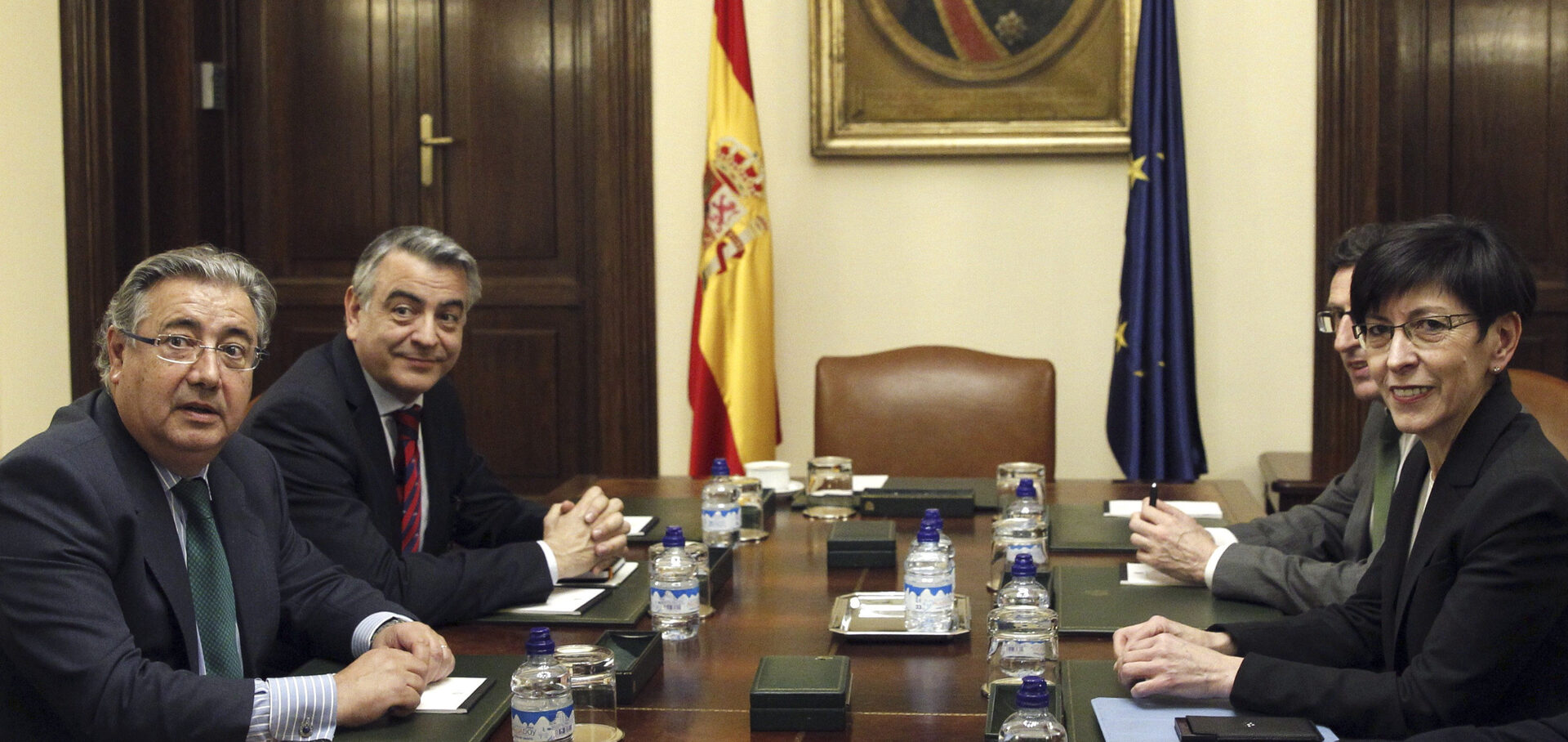 En este contexto, Juan Ignacio Zoido recibió este miércoles en el ministerio del Interior a Estefanía Beltrán Heredia, la consejera de Seguridad del Gobierno vasco. También participaron en el encuentro José Antonio Nieto, el secretario de Estado de Seguridad; Javier de Andrés, el nuevo delegado del Gobierno en el País Vasco, y Josu Zubiaga, el viceconsejero de Seguridad del gabinete autonómico. Estuvieron reunidos más de hora y media, según las fuentes consultadas, y después no comparecieron en rueda de prensa. En un comunicado con membrete del ministerio, no se incluyó la política penitenciaria como uno de los asuntos tratados en el despacho. "Ambas partes sitúan la reunión dentro de la normalidad institucional y han resaltado el clima de cordialidad y entendimiento que la ha presidido", se puede leer en el documento. Ha sido una cita "protocolaria" para tratar "los aspectos fundamentales relativos a la seguridad en el País Vasco y la coordinación entre los diferentes cuerpos policiales", según subrayaron.