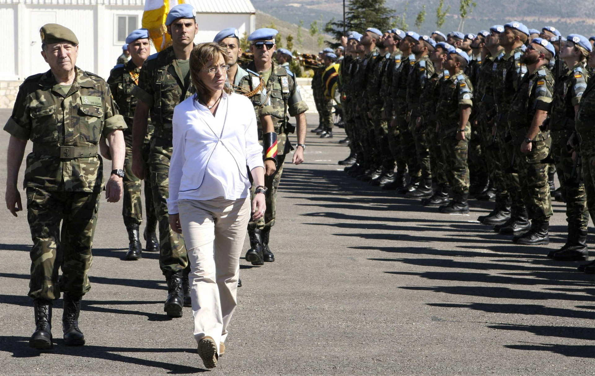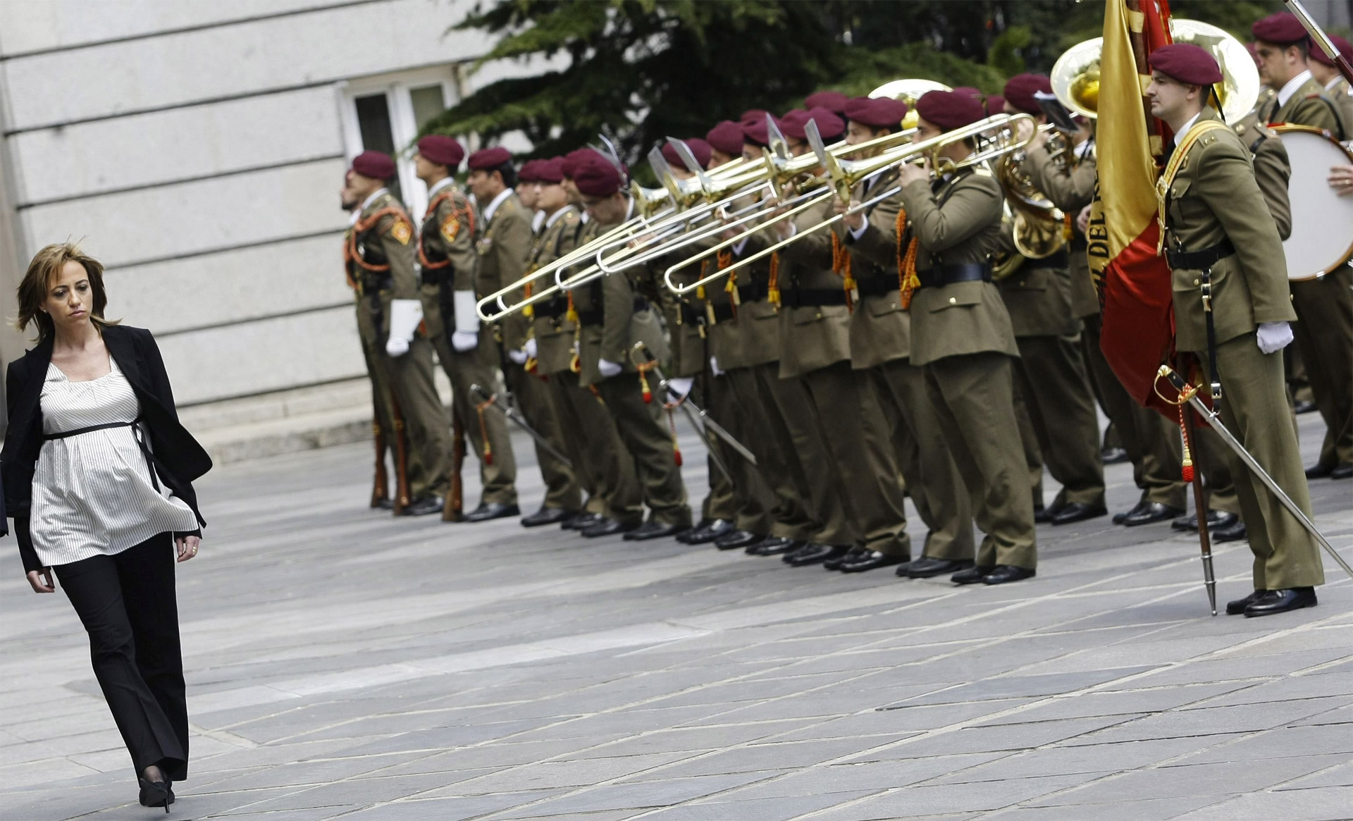 La imagen por la que sin duda será recordada: pasando revista a las tropas embarazada, fue hace casi nueve años, el 14 de abril de 2008, tras haber sido nombrada ministra de Ddefensa