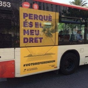 Desde esta semana y hasta el próximo 30 de abril, unos 21 autobuses de Transportes Metropolitanos de Barcelona (TMB) circularán por la calles de la ciudad condal incitando a participar en el referéndum independentista previsto para el mes de septiembre con el mensaje "Porque es mi derecho #Votoreferéndum". Una campaña que también podrá verse en los paneles de las estaciones del metro de Barcelona hasta el próximo 24 de abril y que corre a cuenta del llamado Pacto Nacional por el Referéndum que es el encargado de organizar el organizar el calendario de la consulta separatista.