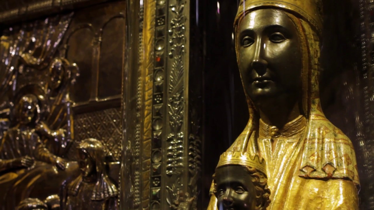 Dos lesbianas se besan frente a la virgen de Montserrat como forma de protesta.