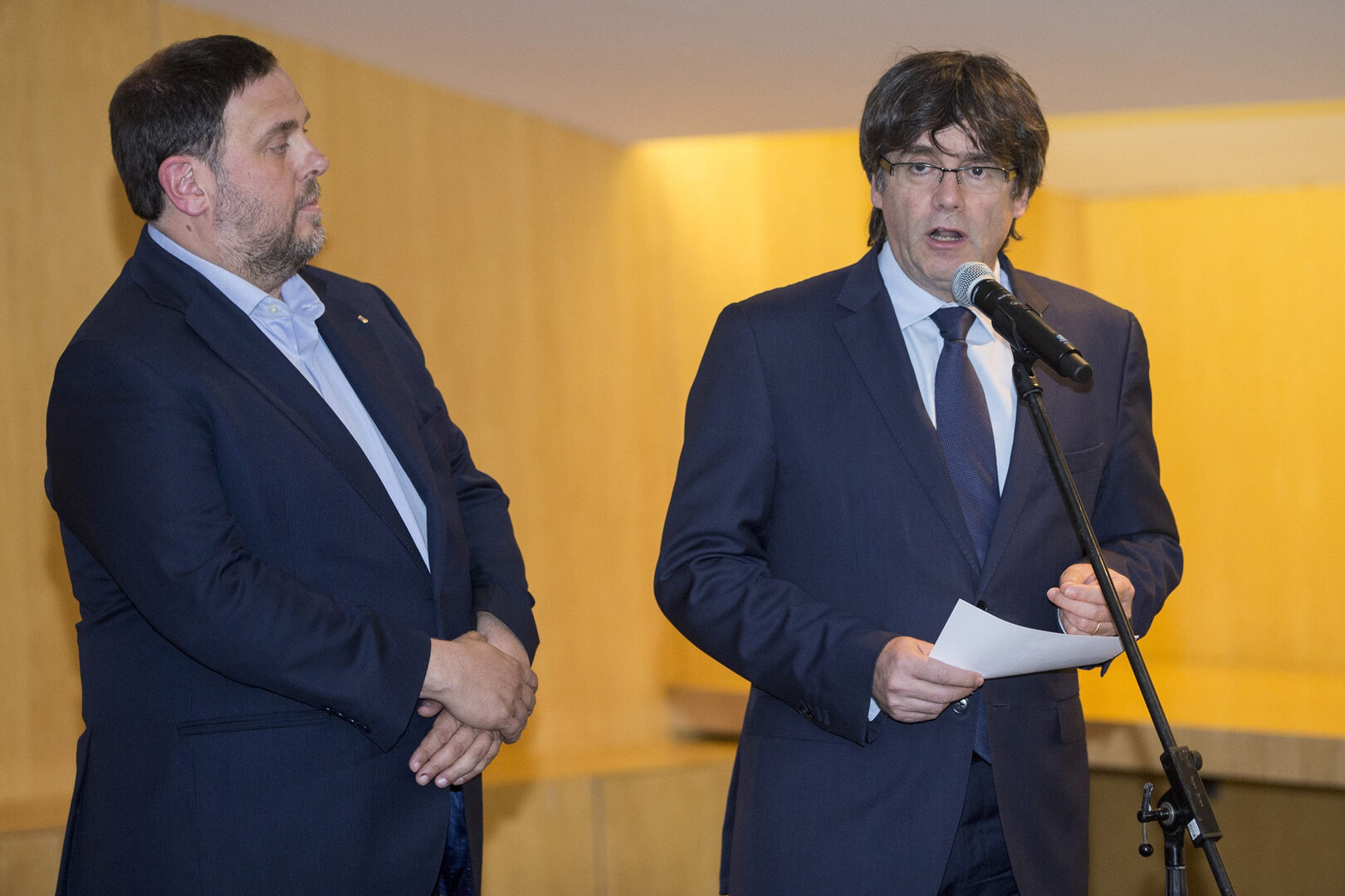 El vicepresidente ha comparecido este viernes junto a Puigdemont para dar portazo a la oferta del Gobierno, pero ha logrado introducir el matiz de que si la fiscalía renuncia a investigar los pronunciamientos golpistas del Parlament o el concurso para comprar las urnas podría darse un entorno de entendimiento.