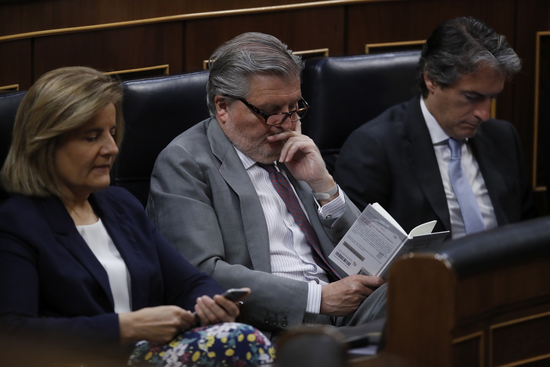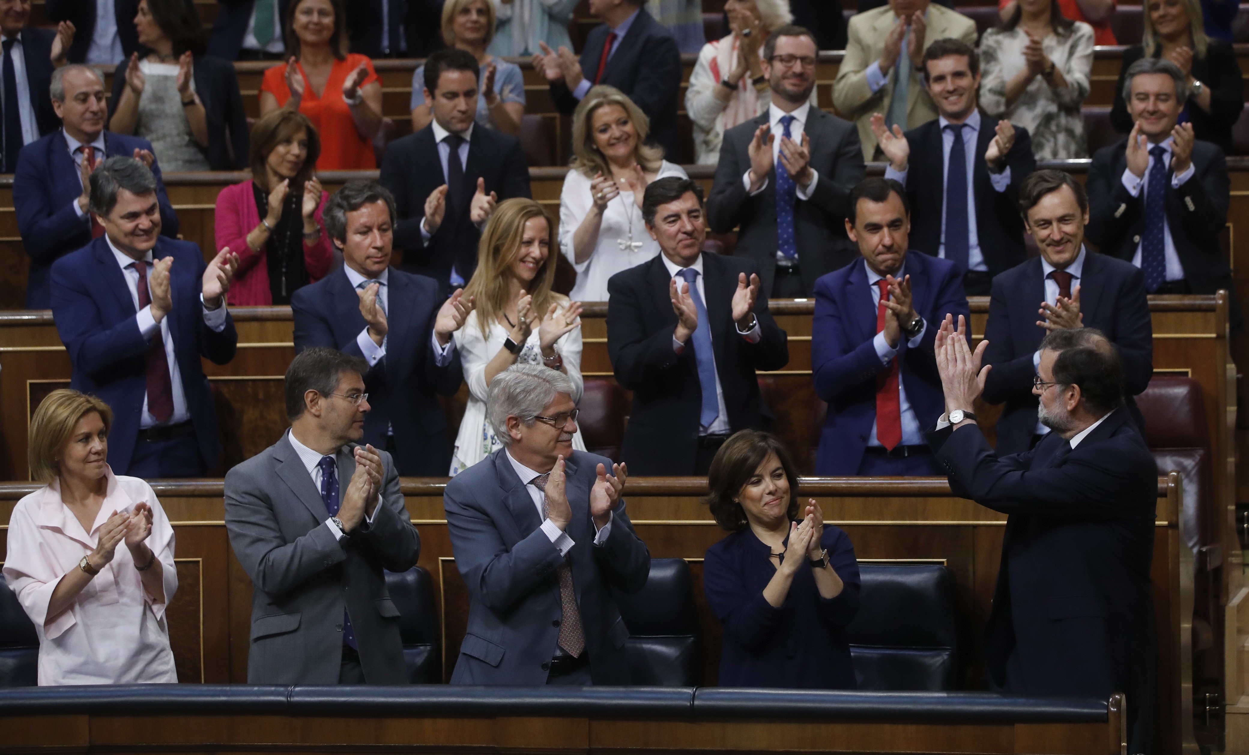 La bancada del Partido Popular aplaude a su líder, el presidente del gobierno, Mariano Rajoy.