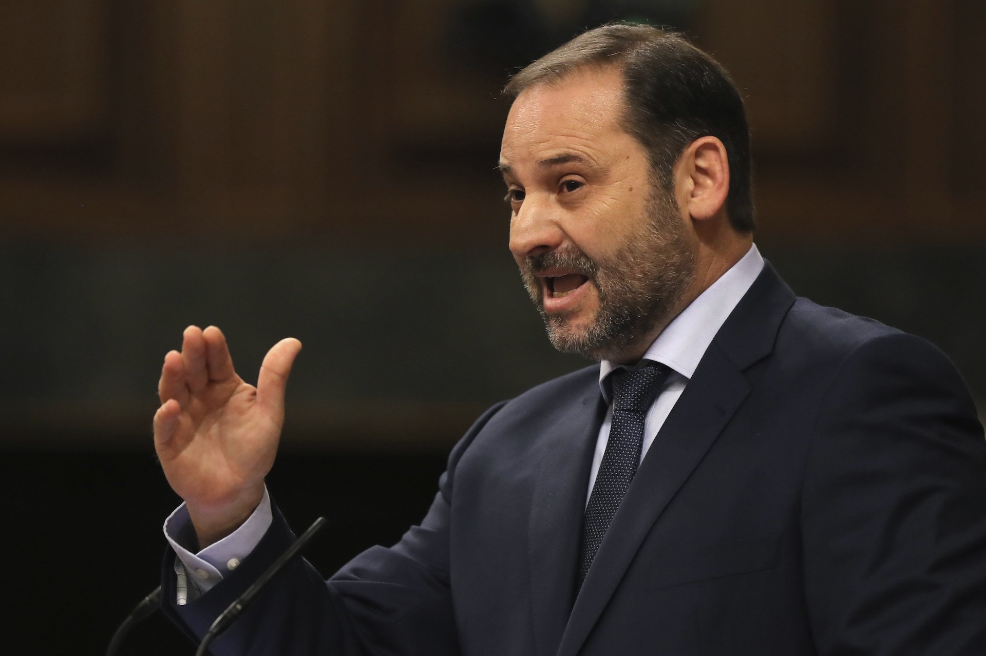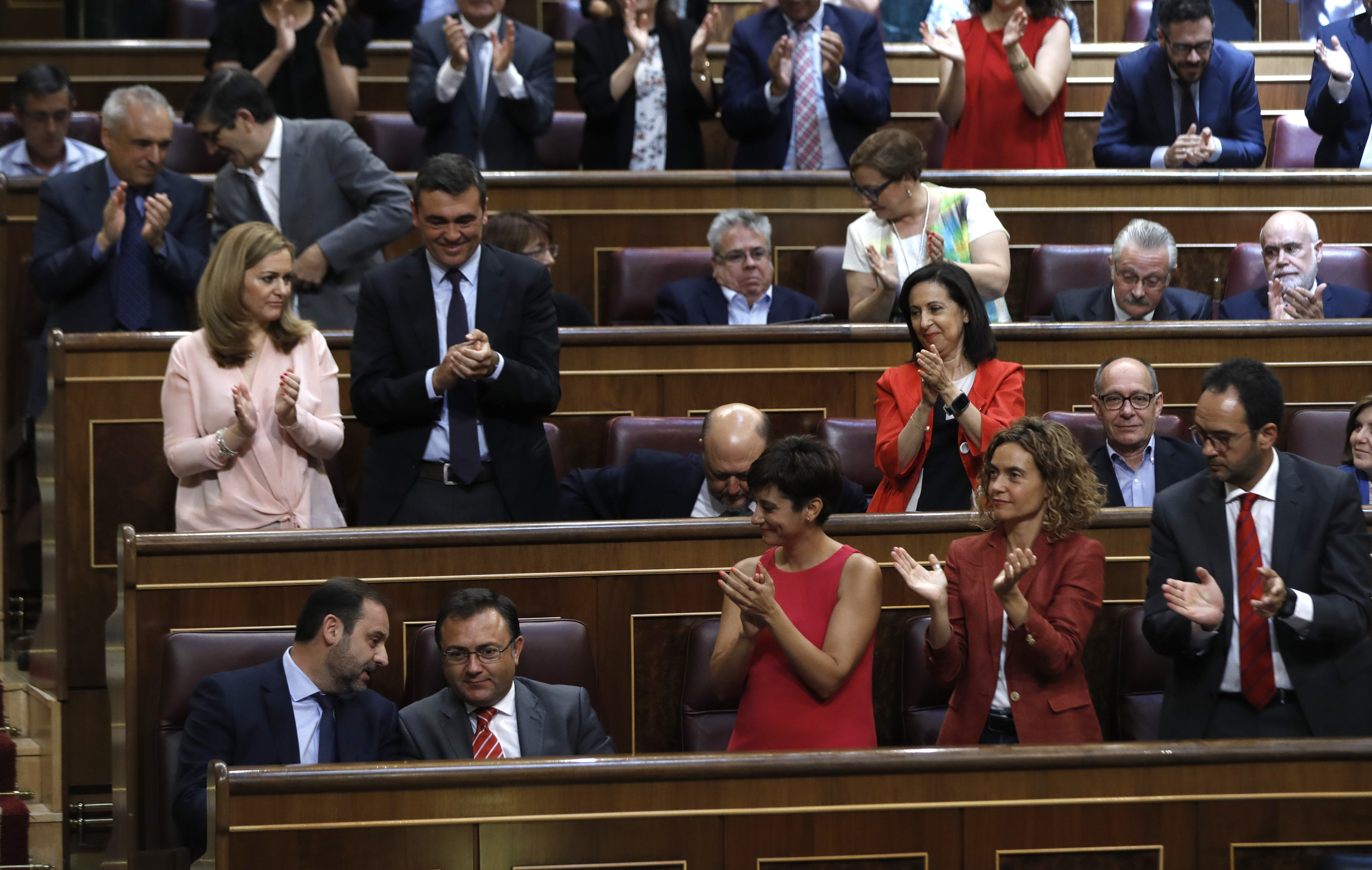 Los diputados socialistas aplauden a su portavoz parlamentario, José Luis Ábalos (i), tras su intervención hoy en el Congreso, en la segunda jornada del debate de la moción de censura de Unidos Podemos contra el Gobierno de Mariano Rajoy.