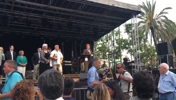 Los congregados abuchean a Carles Puigdemont y gritan "¡España, España!". El president ya ha anunciado la fecha y la pregunta del referéndum y quiere explicarlo en el Congreso, pero sin que los diputados puedan ejercer su derecho a decidir en una votación que concluya el debate. La alcaldesa de Badalona, que gobierna gracias a un pacto de todos contra el PP, lista más votada en las pasadas municipales, ha invitado a Puigdemont a inaugurar las fiestas del barrio de Llefiá, un acto más en la campaña permanente del nacionalismo en contra de España y con el referéndum de autodeterminación como decorado.