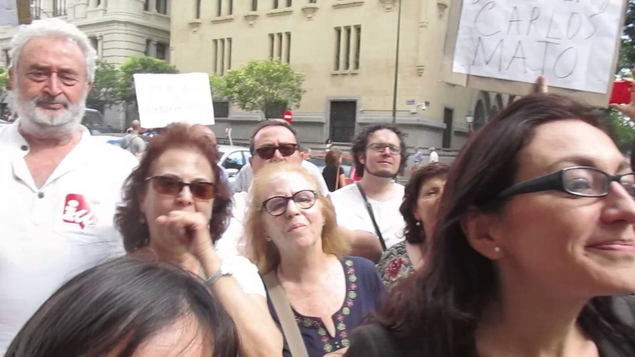 Sólo unas docenas de personas, poco más que familiares y amigos, han esperado a Carlos Sánchez Mato y Celia Mayer a la salida del pleno del Ayuntamiento de Madrid en el que ambos han sido reprobados por el pleno municipal, incluso con los votos del Partido Socialista.