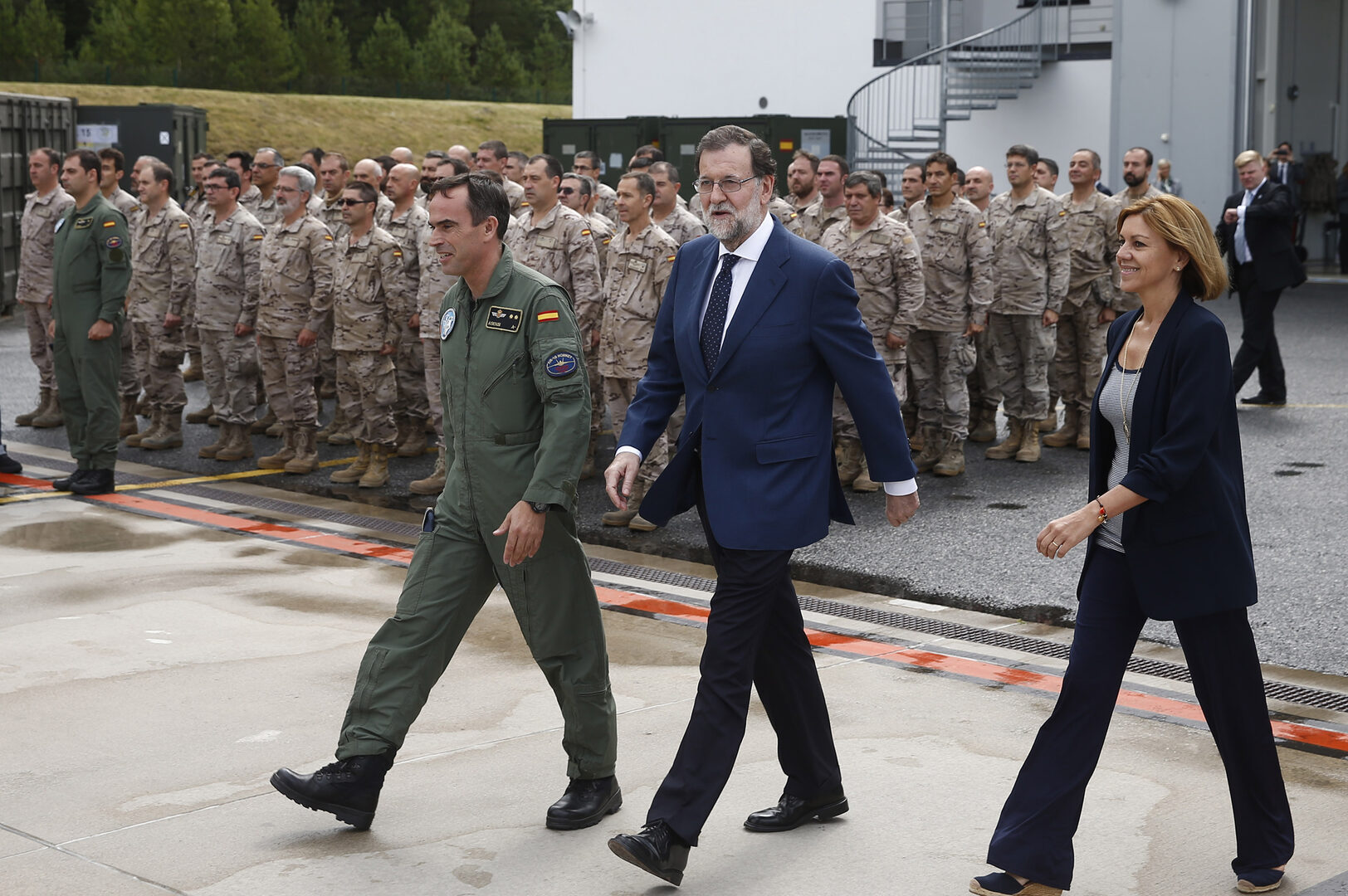 Quien esquivó la cuestión catalana fue Mariano Rajoy, en Tallín (Estonia) donde visitó a los militares desplegados en este país en operaciones de la OTAN en respuesta a Rusia en el flanco Este de Europa. La misión española, declaró, es un "éxito" y "contribuye a una Europa y una España cada vez más segura", afirmó, tal y como recoge la agencia EFE. En Moncloa no querían un mensaje sobre los independentistas con el presidente rodeado de soldados, si bien María Dolores de Cospedal, también presente en el acto, ha recordado en varias ocasiones que la principal obligación de las fuerzas armadas es salvaguardar la unidad nacional.