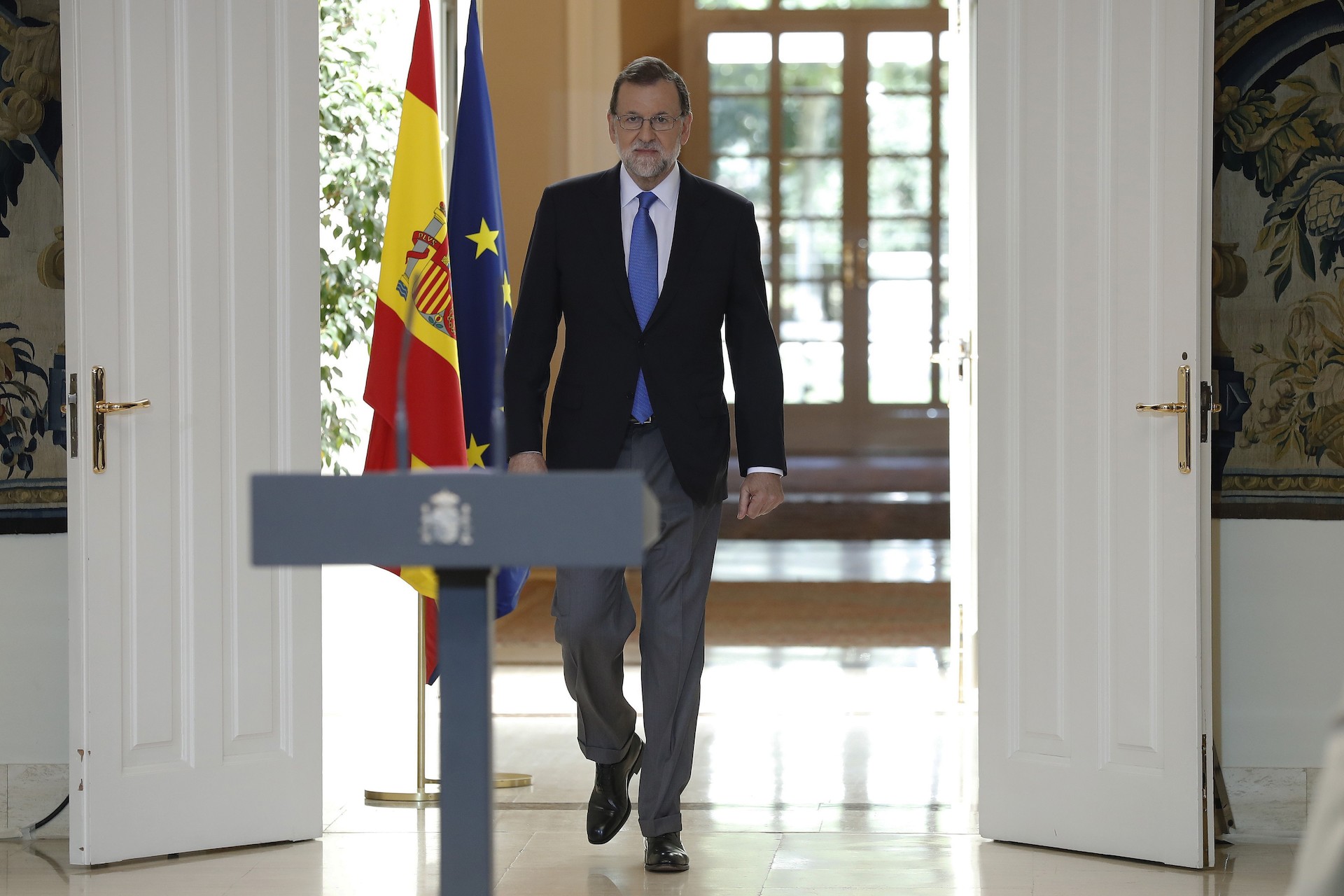 El presidente anunció un recurso ante el Tribunal Constitucional contra la reforma del reglamento del Parlamento catalán, con la que los independentistas quieren imponer "a las bravas" su proyecto "radical y división". Antes, Soraya Sáenz de Santamaría comunicó la decisión al PSOE y Ciudadanos. En concreto, la vicepresidenta mantiene hilo directo con Patxi López y Miquel Iceta del lado socialista y José Manuel Villegas e Inés Arrimadas del partido naranja. Una comunicación que se mantendrá durante el mes de agosto, en caso de que el Gobierno catalán lleve a cabo alguna maniobra. En Moncloa admiten que estarán vigilantes, con la hipótesis de elecciones inminentes encima de la mesa.