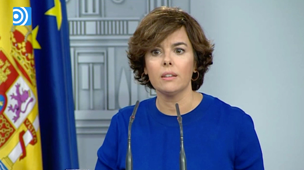 Soraya Sáenz de Santamaría ha informado de que Mariano Rajoy solicita al TC, a través de un incidente de ejecución de sentencia, que declare nulos y sin efecto los acuerdos del Parlamento catalán.