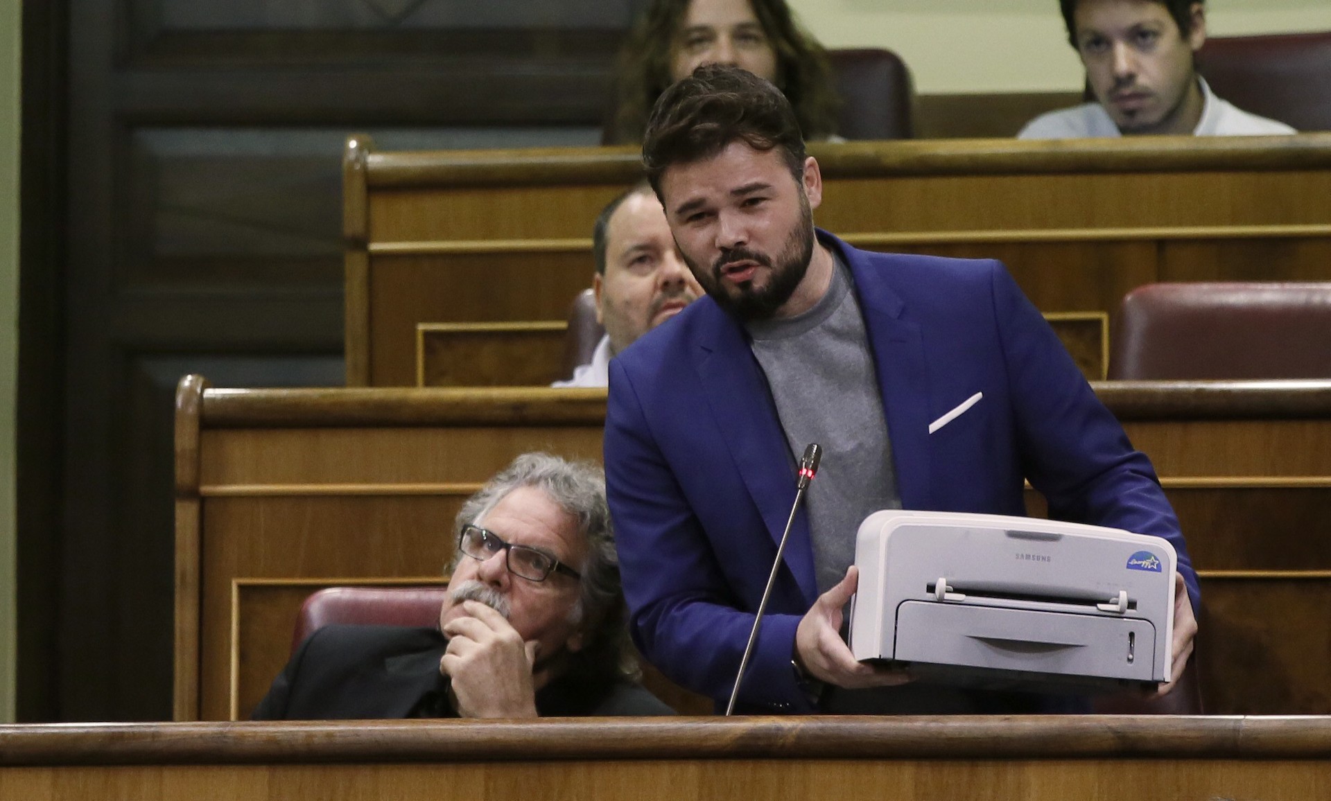 Rufián, impresora en mano, a Santamaría: "Espero que no me detenga"