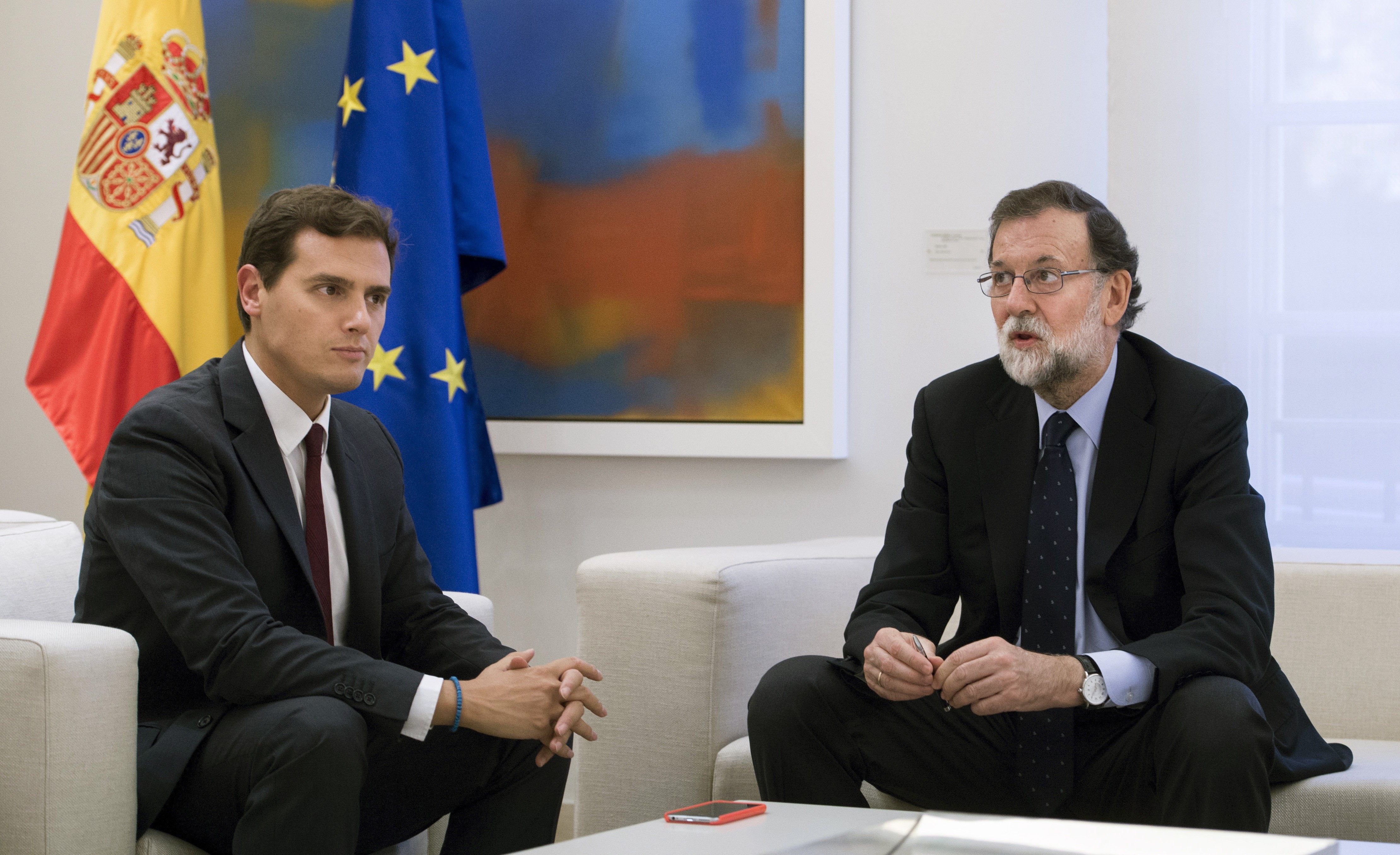 El presidente se comprometió a estudiar la utilización del 155, que en la propuesta de Ciudadanos se aplicaría con el único objetivo de convocar elecciones autonómicas anticipadas. Rivera, tras algo más de una hora de reunión con el jefe del Ejecutivo, dijo que es la "medida más limpia, la más democrática" para poner fin al desafío separatista y lanzó un guante al PSOE para que se sume al consenso, apelando a los acuerdos pasados entre socialistas y centristas, en el primer gesto de distensión que tiene con Pedro Sánchez en las últimas semanas.