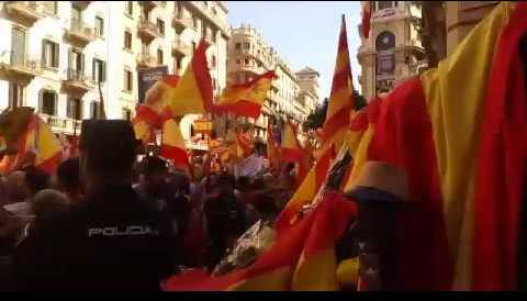Cientos de miles de personas abarrotan el recorrido desde primera hora de la mañana: cánticos de "Viva España y viva Cataluña" y "No estáis solos".
