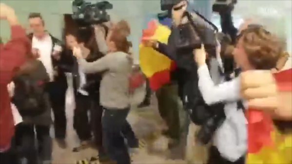 A Forn lo han recibido muchos periodistas, además de un pequeño grupo de manifestantes cargados con banderas de España que le han puesto la canción de "Que viva España" de Manolo Escobar, y le han gritado "Yo soy español", "Puigdemont a prisión" y otros improperios e insultos como "¡Cabrón!".