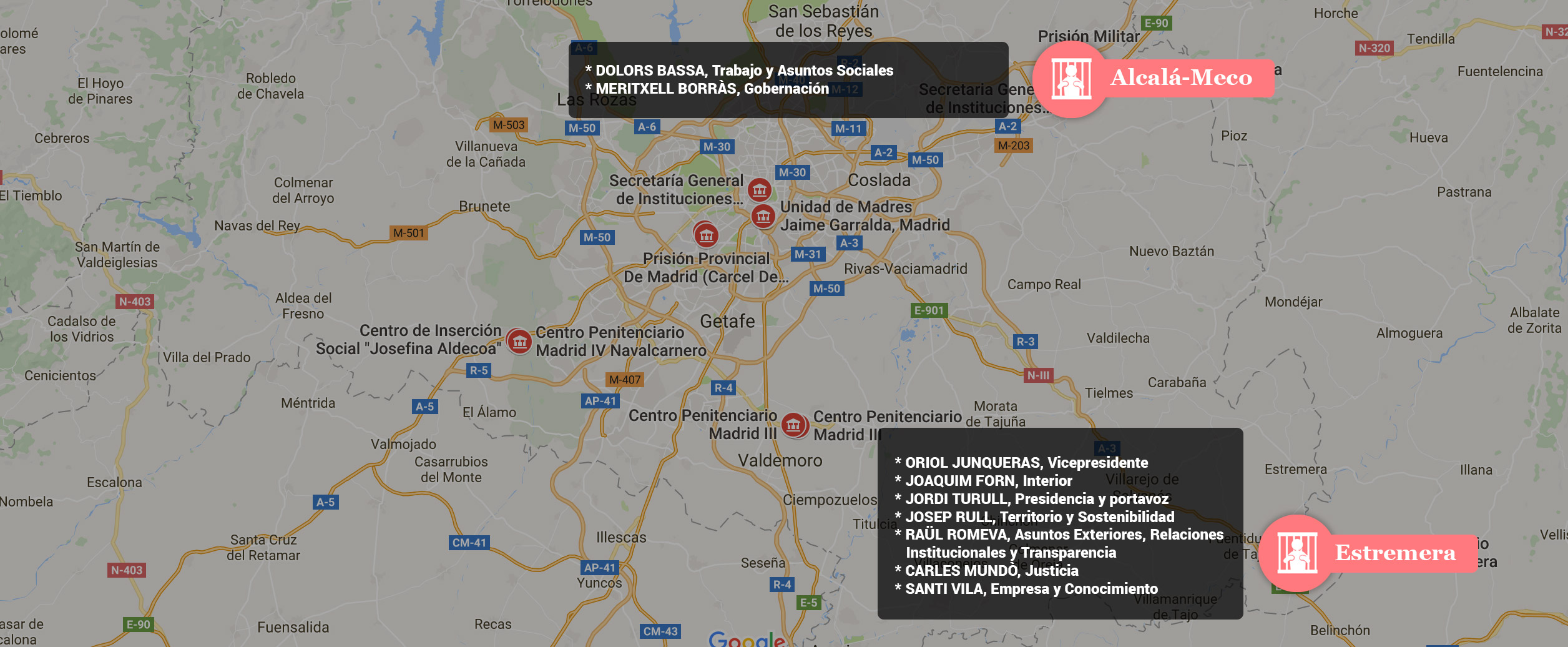 Los exconsejeros varones ingresan en la cárcel de Estremera, mientras que las mujeres lo hacen en el centro peniteniciario de Alcalá-Meco.